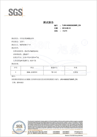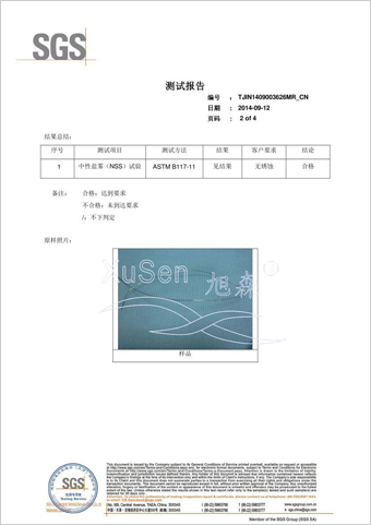 金刚网304L不锈钢丝盐雾试验生锈情况检测报告