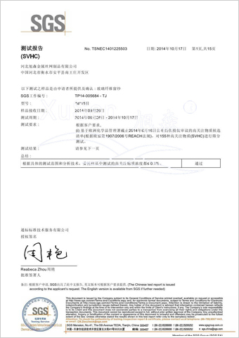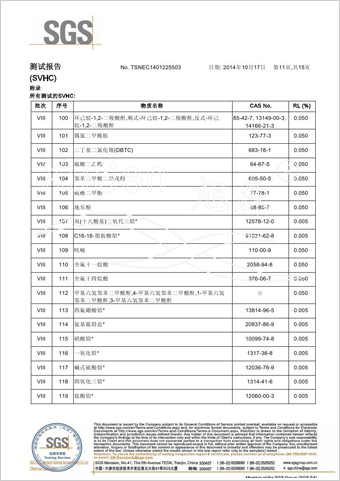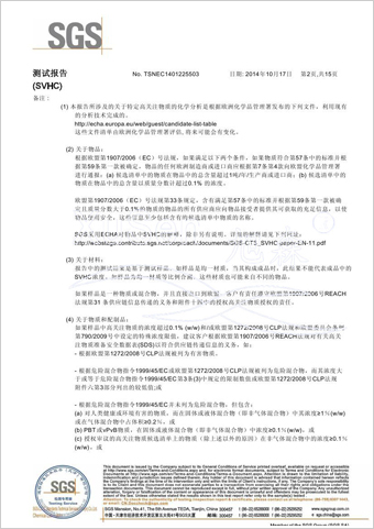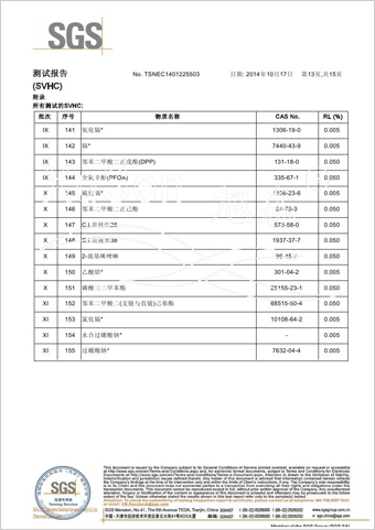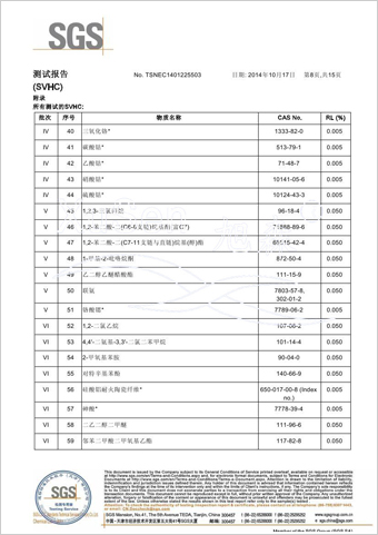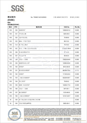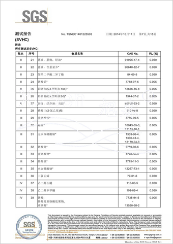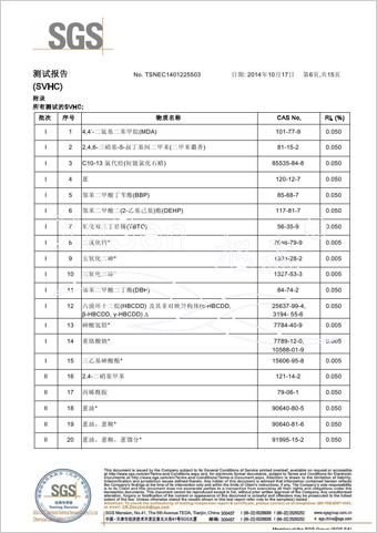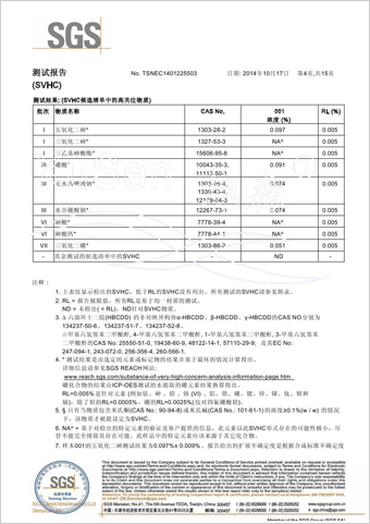 | 玻璃纤维隐形窗纱欧盟REACH法规SVHC(高度关注物质)检测报告 | |