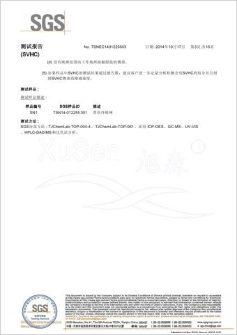 | 玻璃纤维隐形窗纱欧盟REACH法规SVHC(高度关注物质)检测报告 |