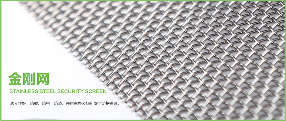 金刚网又名防盗网、安全网、防弹网,是河北旭森公司旗下主打产品之一。该产品选用优质不锈钢丝,经过先进数控机器平织工艺编织而成,经裁剪、矫平、表面去磷钝化处理后采用静电粉末喷涂处理,网面平整,目数均匀,经纬弯曲度一致,透光性能好,防蚊防虫,是防盗、防弹以及居家办公场所安全防护首选。由于该产品多用于门窗制造,一般也称其为金属安全门窗网。